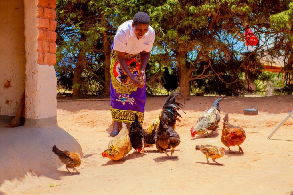 When her Purpose Group completed its first savings cycle, Patuma received a significant return from her contributions, savings, and interest. She used the money to pay school fees and to buy several chickens, beginning a small livestock business. The chickens multiplied quickly. “Now I have enough to sell some and use others for food,” she explains. “This helps me take care of my family.”