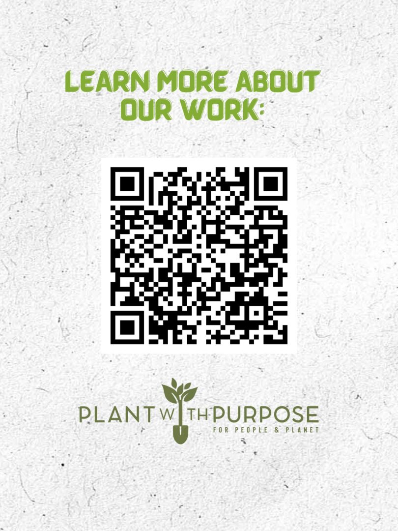 We have made a printable QR code so that guests who wish to get connected to Plant With Purpose or to make a donation can do so via their phones. They may also access those forms via this link.